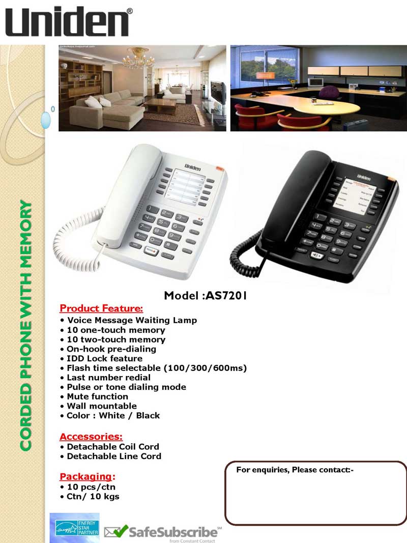 AS7201 Uniden Basic Single Line Phone